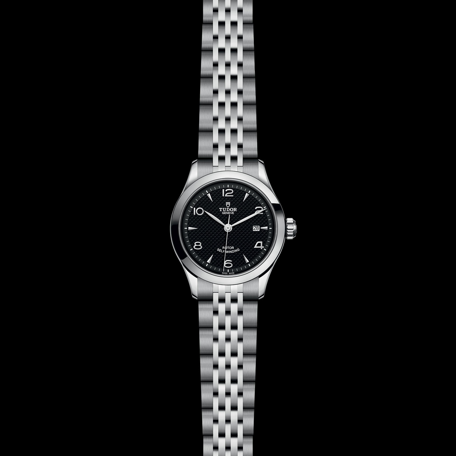 Steel bracelet, 7 rows, satin-brushed external links, polished centre links, with folding clasp and safety catch