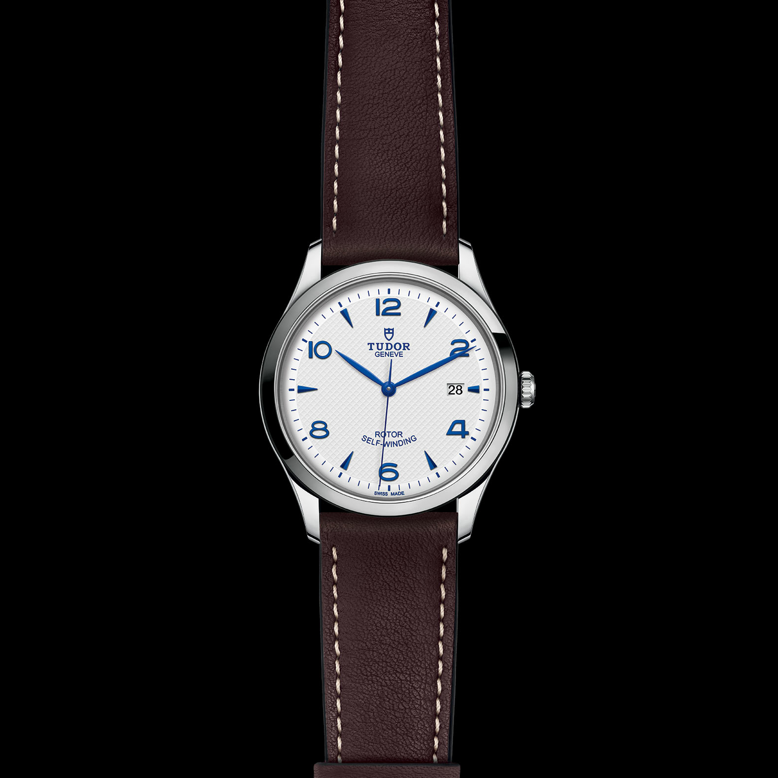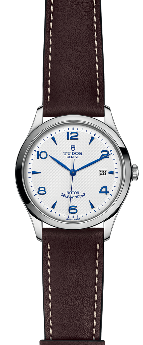 41mm steel case, Opaline and blue dial