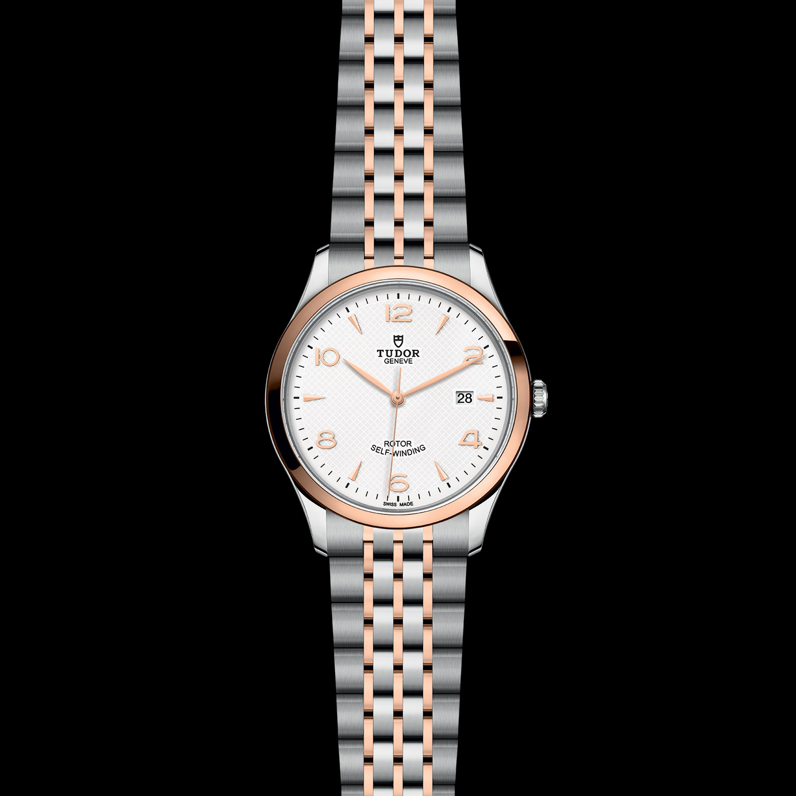 First center links in steel or solid rose-gold. Remaining center links in steel or steel covered by a 0.2mm rose gold cap