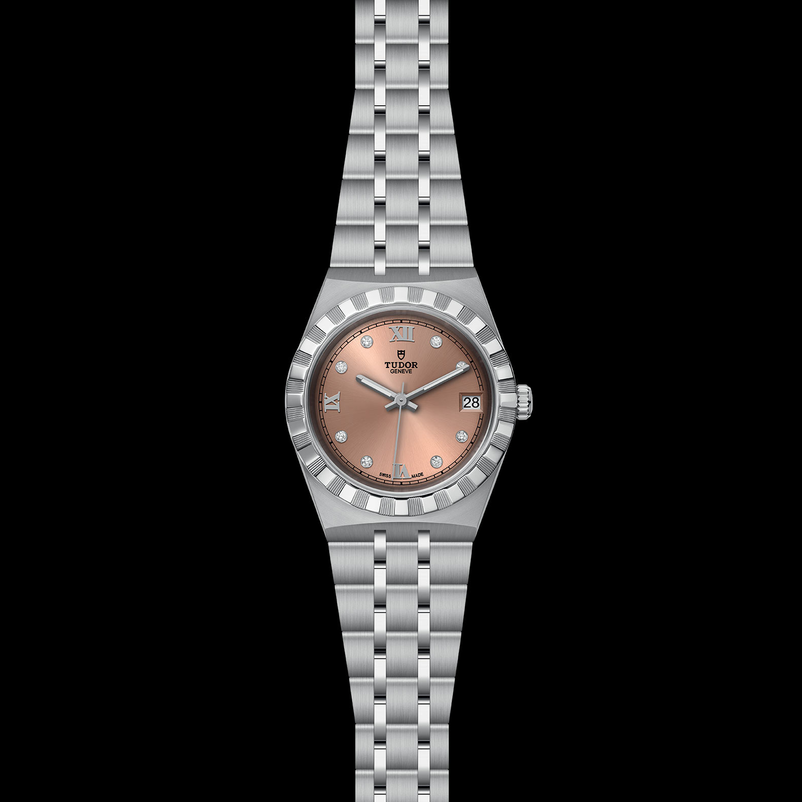 Integrated bracelet in steel, 5 rows, satin-brushed external and central links, polished intermediate links, with folding clasp and safety catch