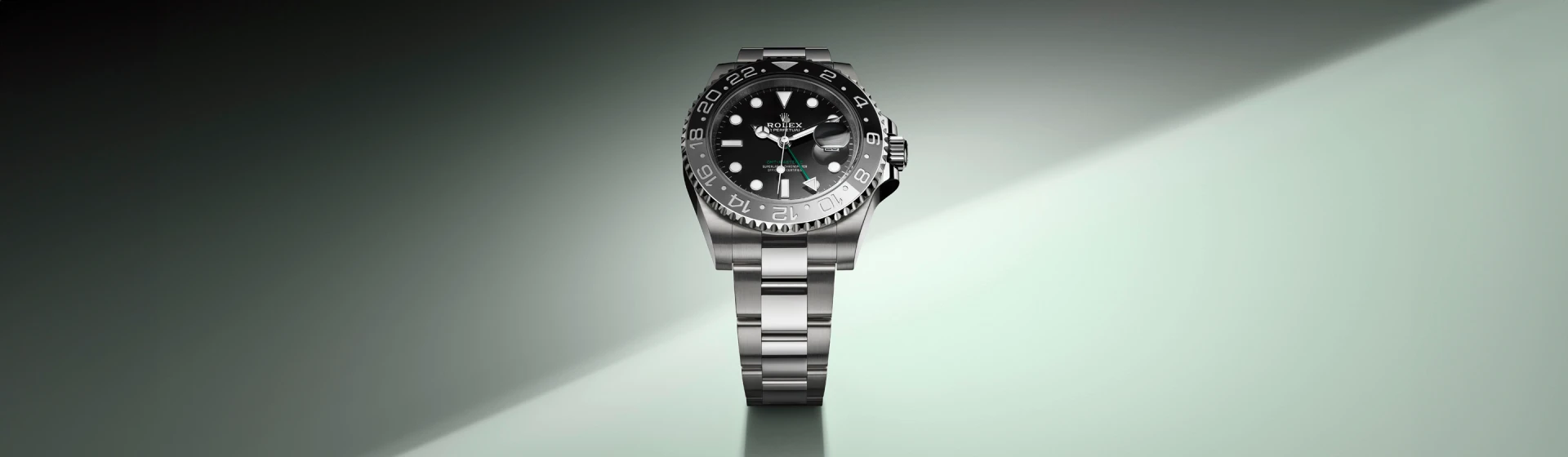 The Cerachrom bezel insert is manufactured in a single piece by Rolex from extremely hard ceramic. This high-tech material is virtually scratchproof and keeps its vibrant colours over time. Rolex broke new ground in 2013 when it introduced its first two-colour, single-piece ceramic bezel insert – blue on one half and black on the other. One year later, the brand released a Cerachrom insert in red and blue – the GMT-Master’s original colours. It carried out pioneering research to develop a red ceramic corresponding to its aesthetic and quality criteria. Over the years, Rolex presented other colour combinations: brown and black in 2018, green and black in 2022 – on a version with the crown and crown guard on the left side of the case and the date display at 9 o’clock – and grey and black in 2023. In 2025, Rolex released its first-ever ceramic dial on the GMT-Master II, in the same shade of green as the lower half of the two-colour green and black Cerachrom bezel insert that frames the watch face.